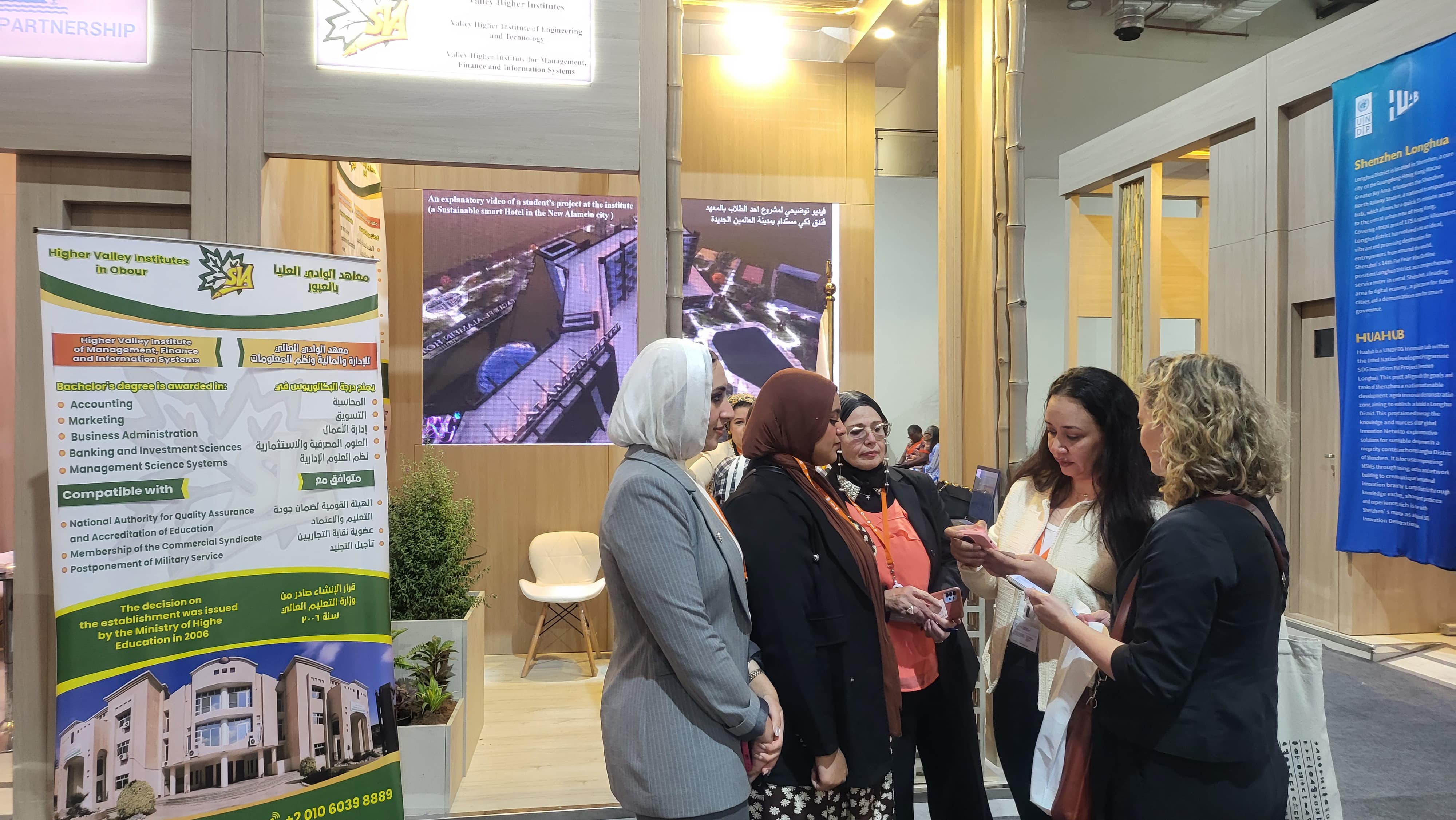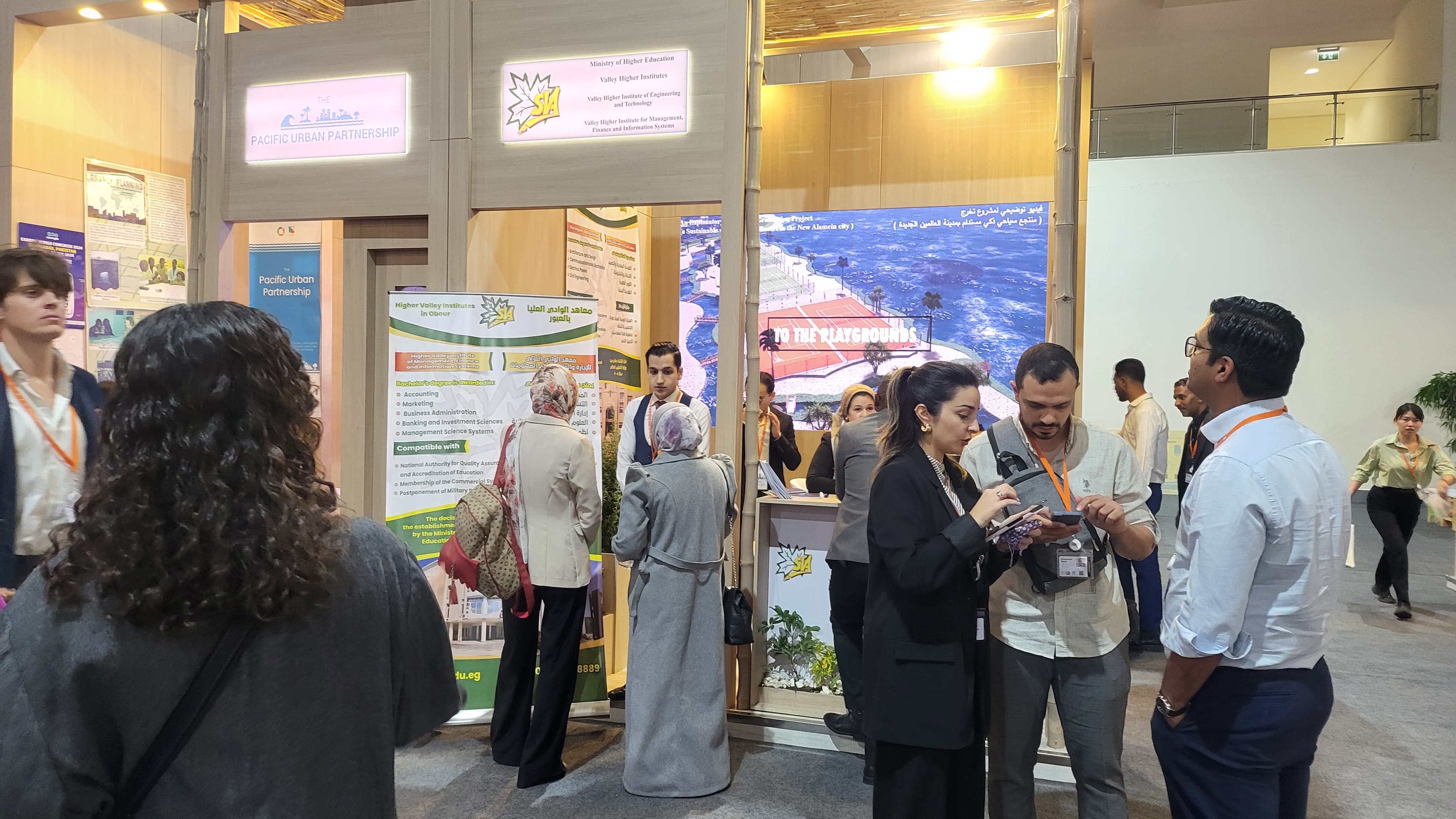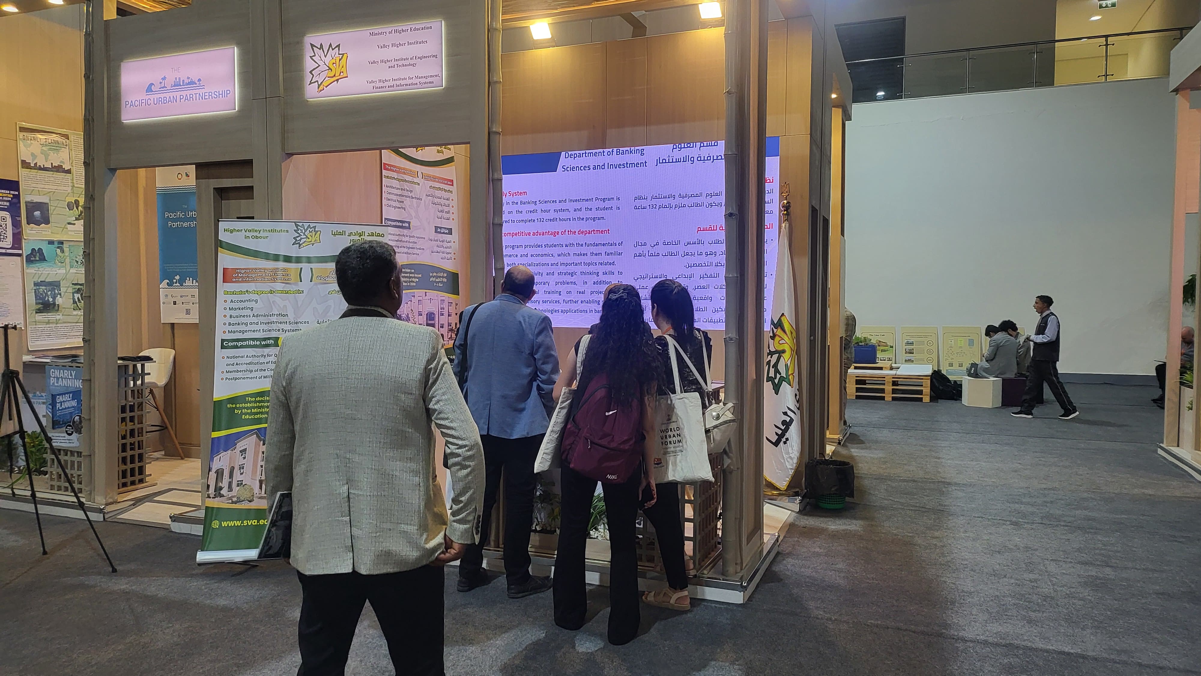 كونها المؤسسة التعليمية الخاصة الوحيدة التي انفردت بتخصيص جناح لها بالمعرض المصاحب للمنتدي للتعريف بمعاهد الوادي العليا وانشطها وبرامجها الاكاديمية. وقد لاقى جناح معاهد الوادى العليا إقبالاً واسعاً من الزوار الذين أبدوا إعجابهم بالإنجازات التى حققتها المعاهد، وأشادوا بدورها في دعم جهود الدولة المصرية في مجال التنمية العمرانية