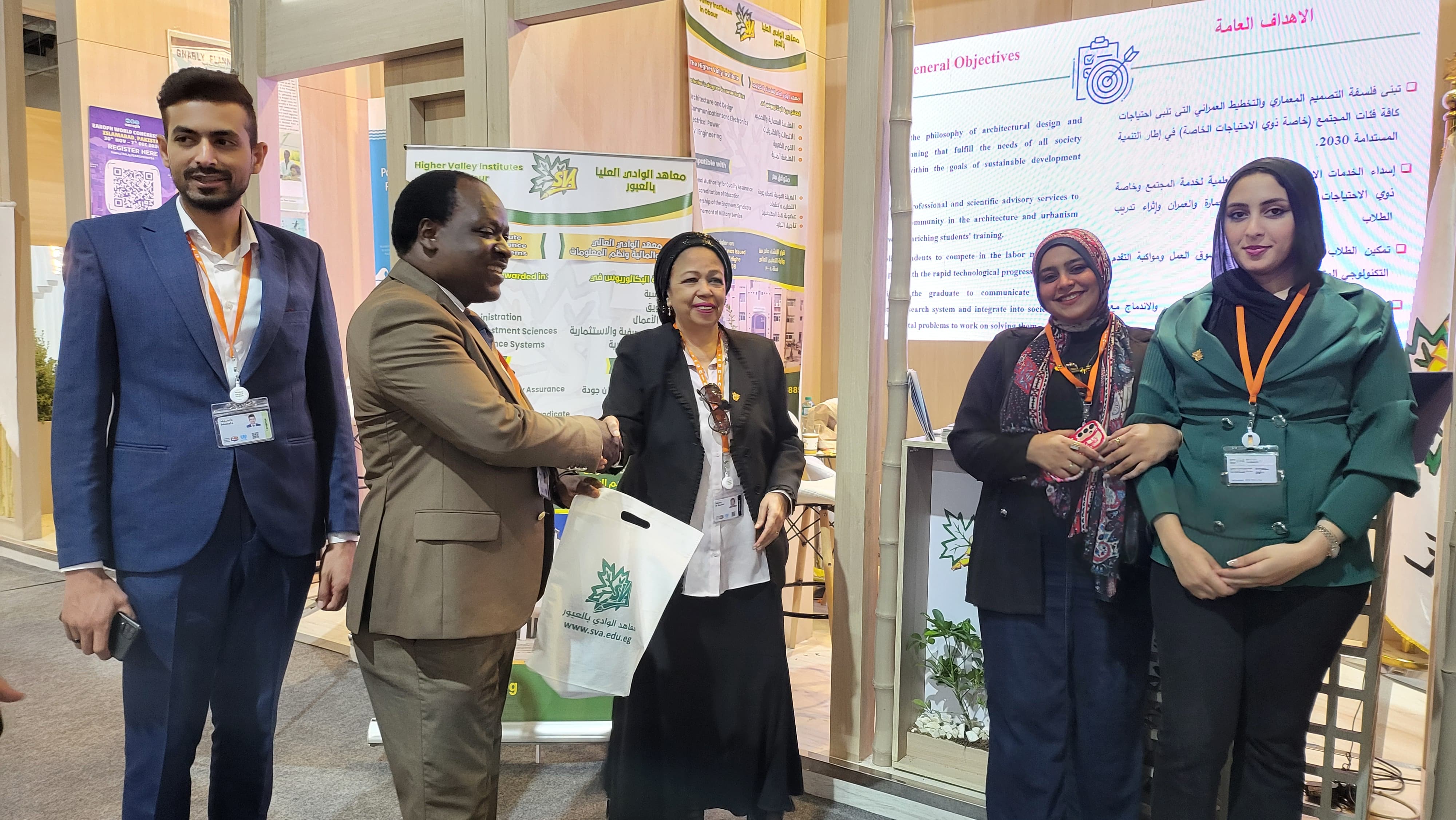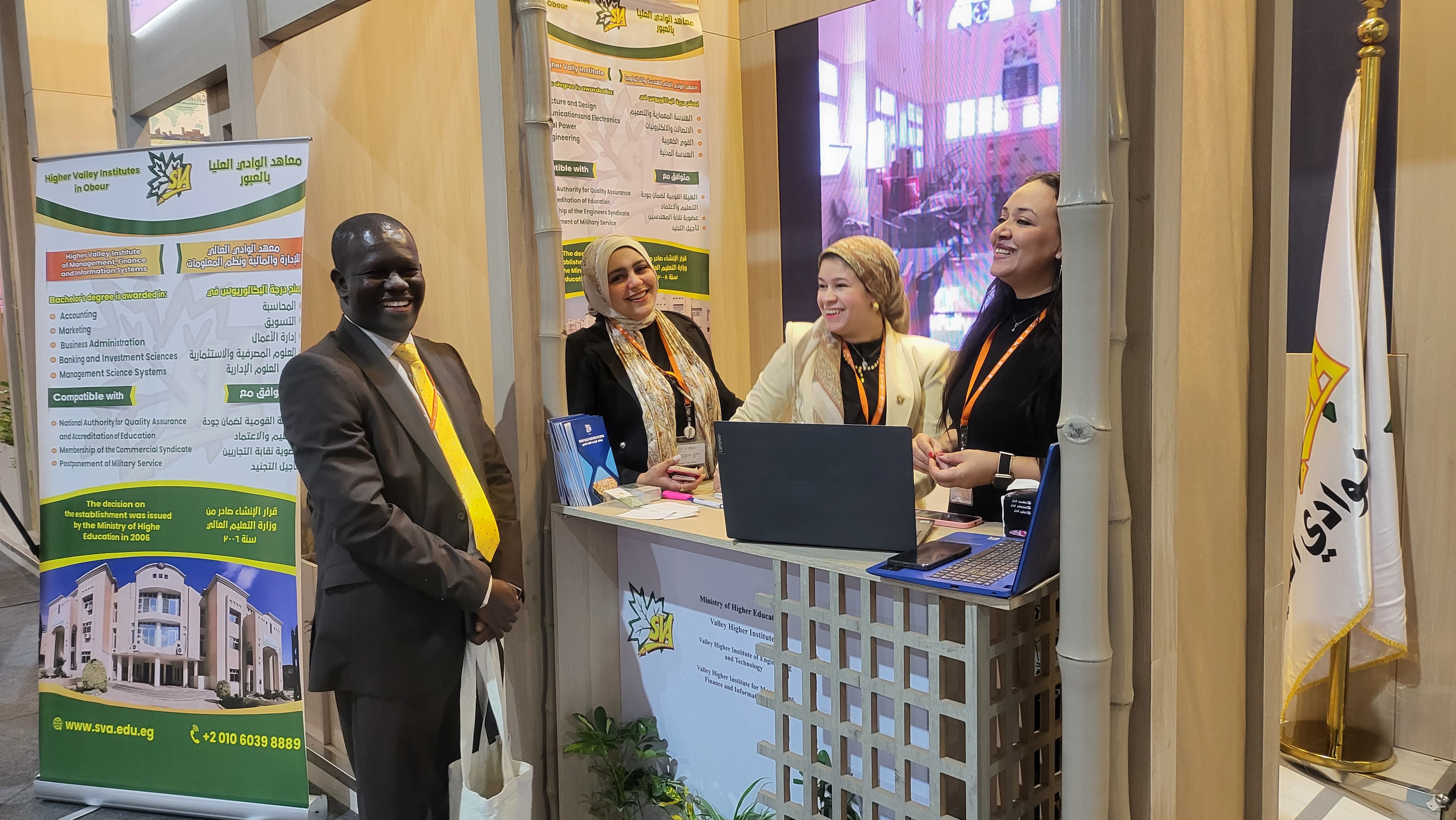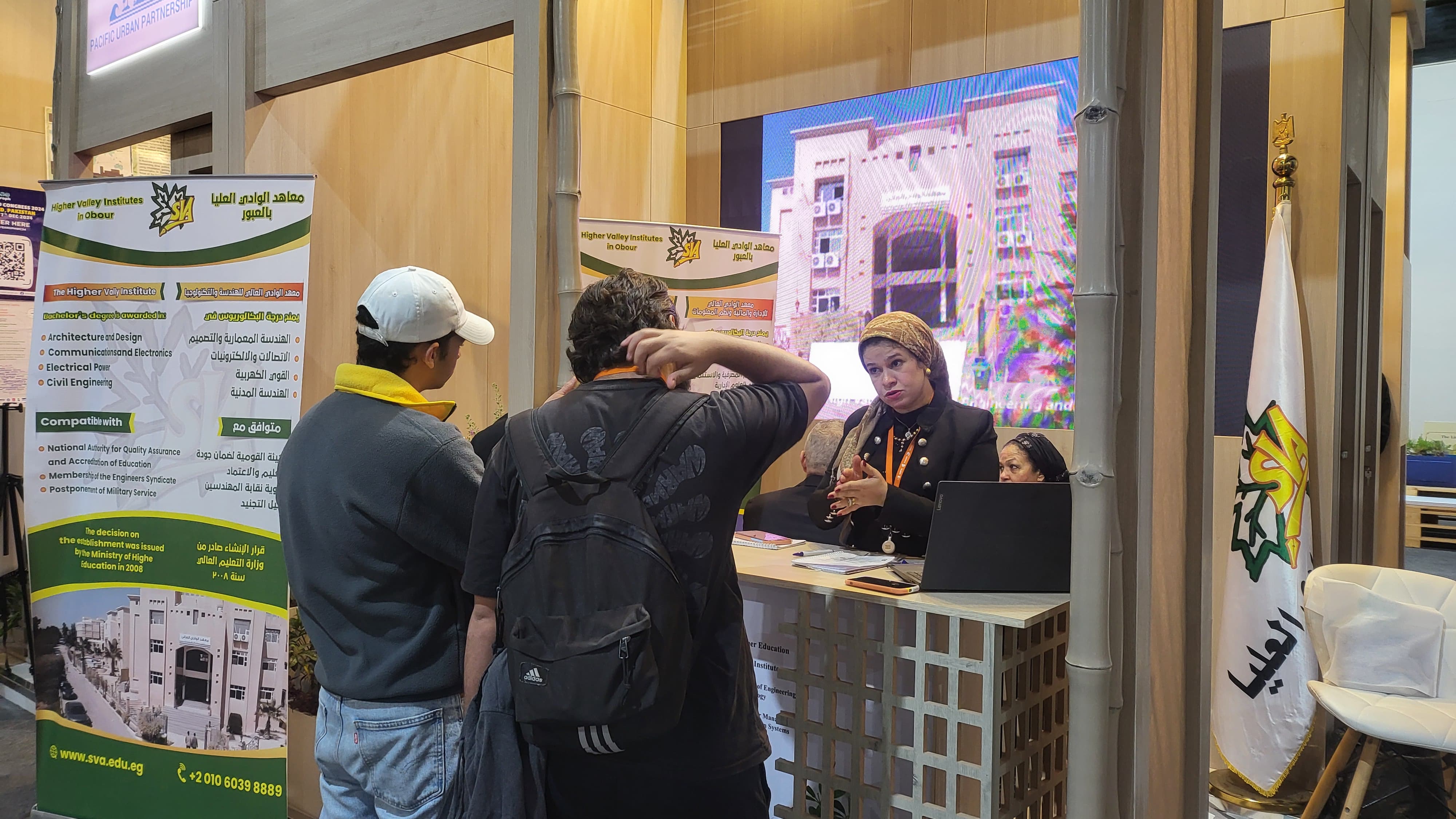 كونها المؤسسة التعليمية الخاصة الوحيدة التي انفردت بتخصيص جناح لها بالمعرض المصاحب للمنتدي للتعريف بمعاهد الوادي العليا وانشطها وبرامجها الاكاديمية. وقد لاقى جناح معاهد الوادى العليا إقبالاً واسعاً من الزوار الذين أبدوا إعجابهم بالإنجازات التى حققتها المعاهد، وأشادوا بدورها في دعم جهود الدولة المصرية في مجال التنمية العمرانية