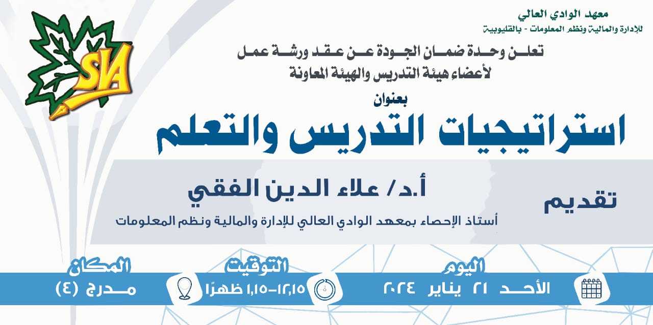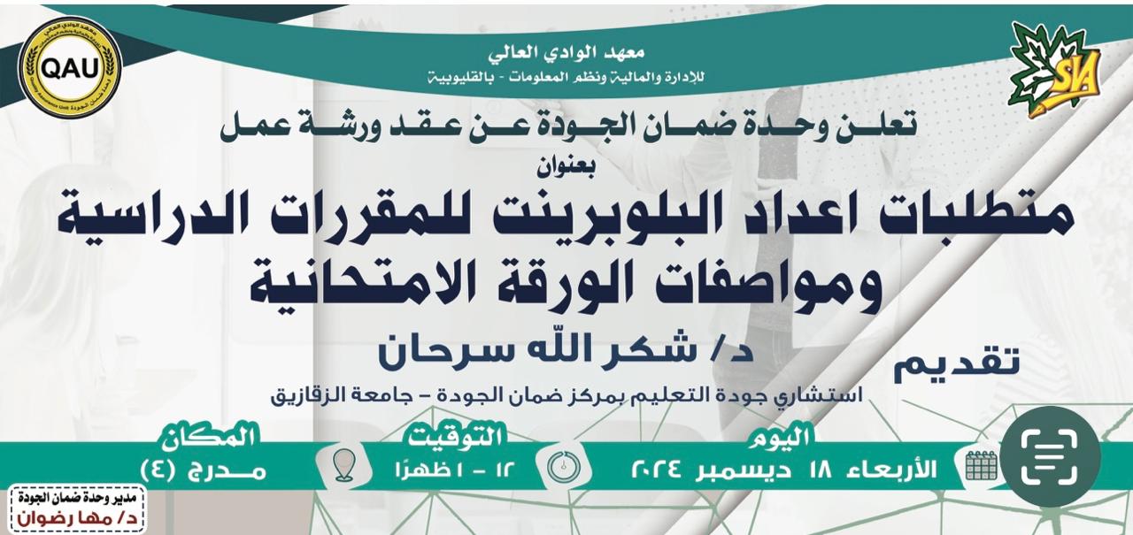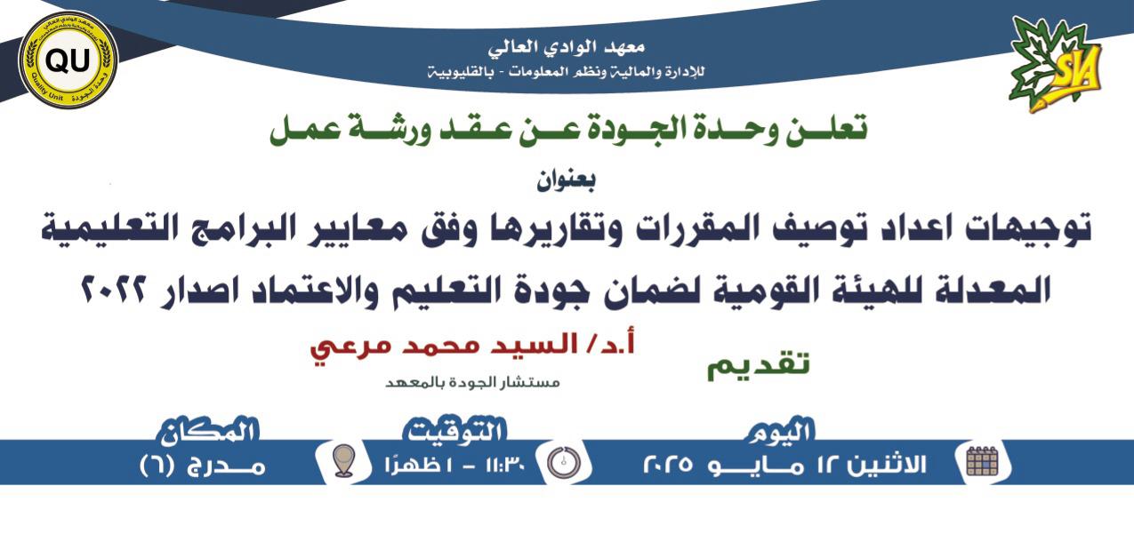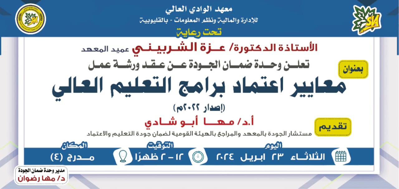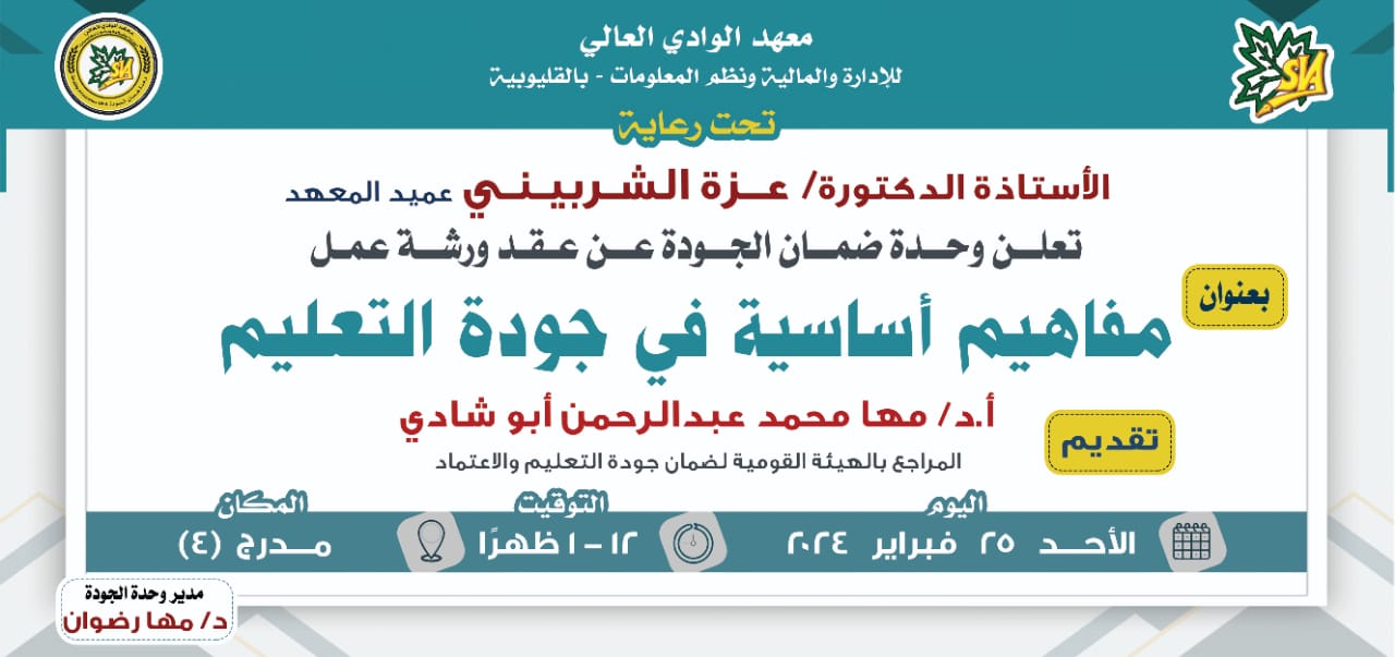 وحدة ضمان الجودة لمعهد الوادي العالي للعلوم الادارية